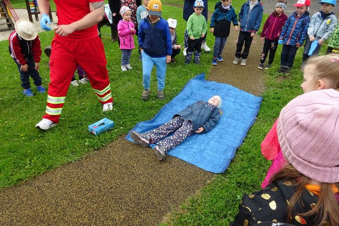 Úvod > Mateřská škola > Fotogalerie akcí > Kurz první pomoci - zážitkové dopoledne se záchranářem