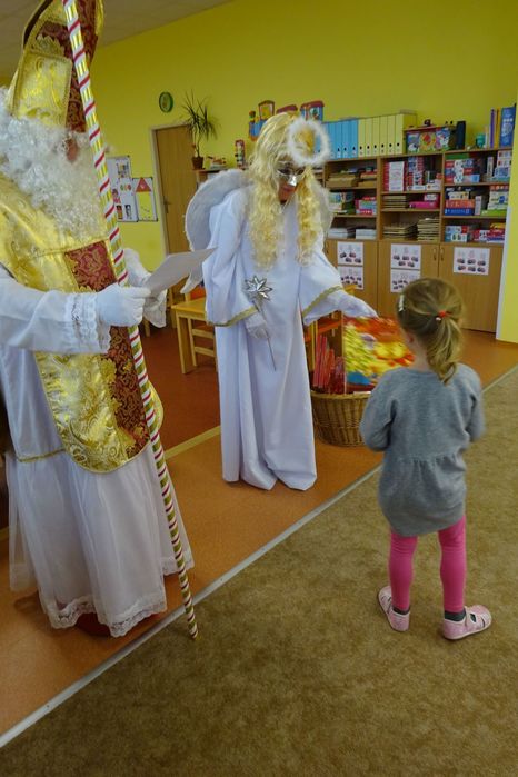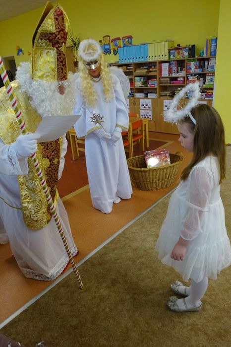 Dnes nás navštívili Mikuláš s andílkem a také čertem. Mikuláš hodné děti pochválil a se zlobivými, které slíbily, že už budou hodné, si podal ruku. Všechny děti dostaly od anděla adventní kalendář, který byl věnován jako sponzorský dar. Mockrát děkujeme.
