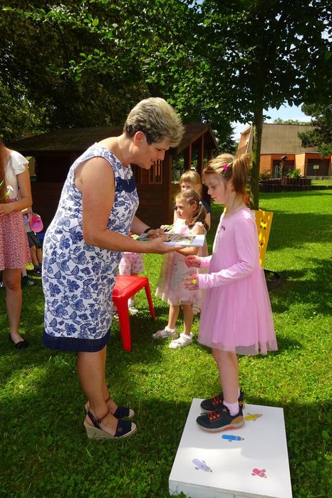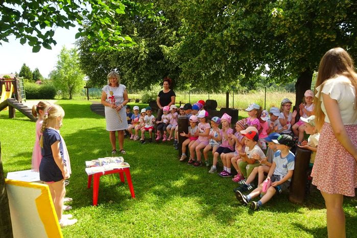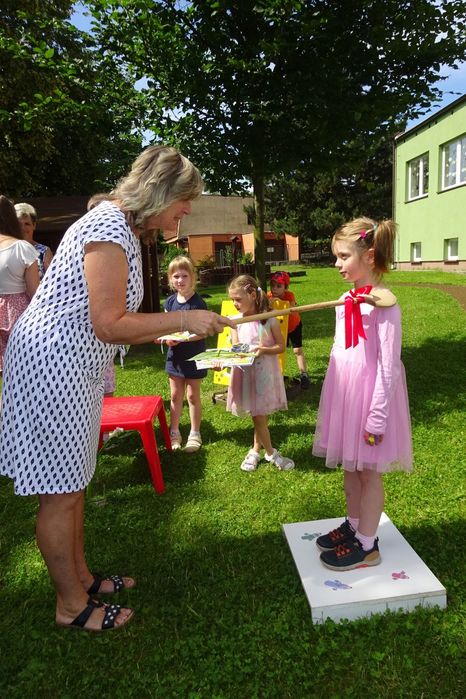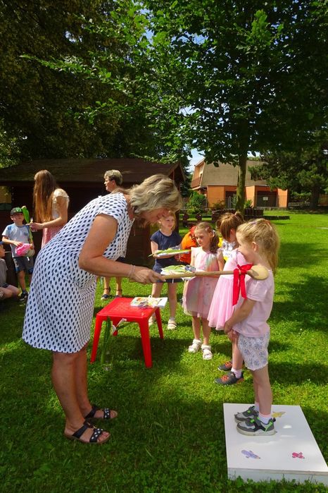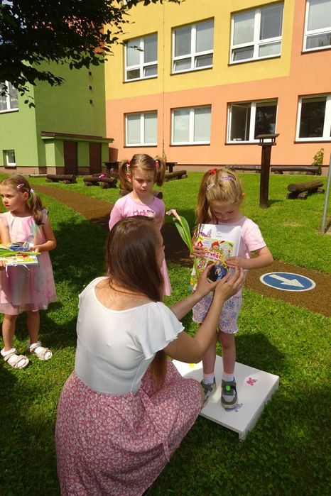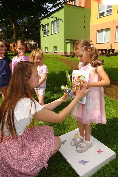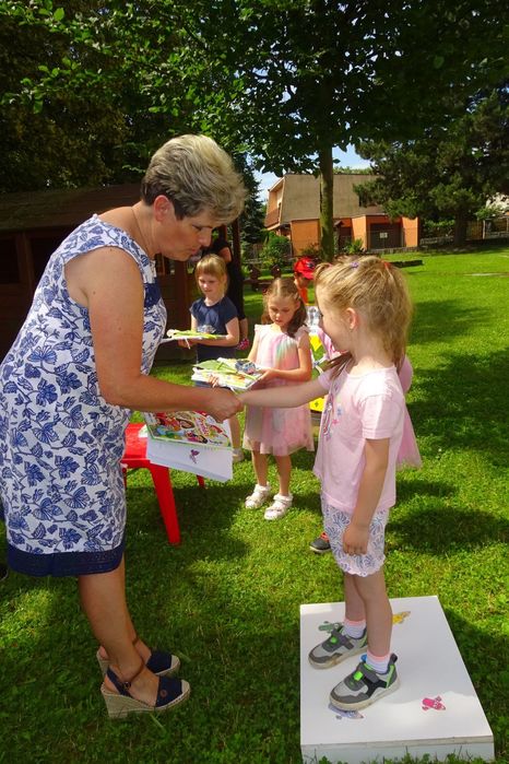 Dnes jsme slavnostně pasovali naše budoucí školačky na školní zahradě. Holčičky měly připravenou básničku a písničku, kterou přednesly na úvod. Poté byla jedna po jedné pasována a odnesla si s sebou domů plno dárečků.