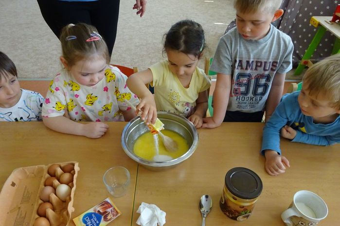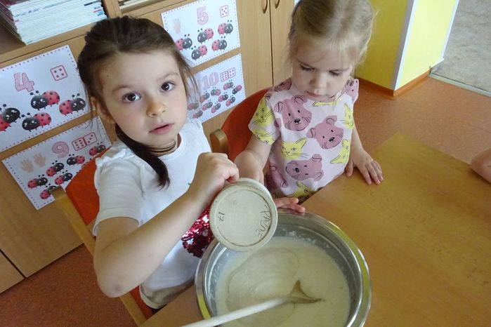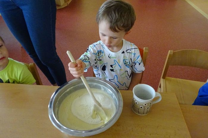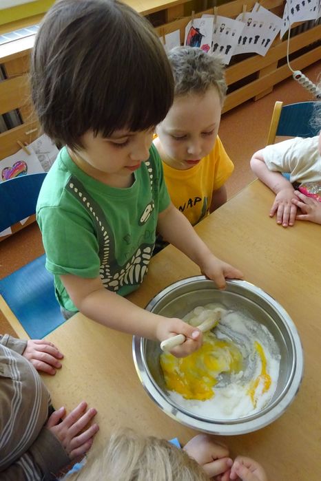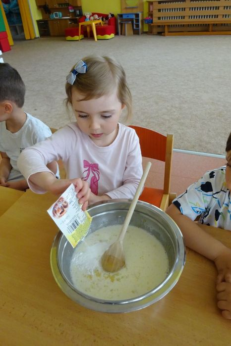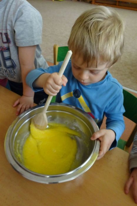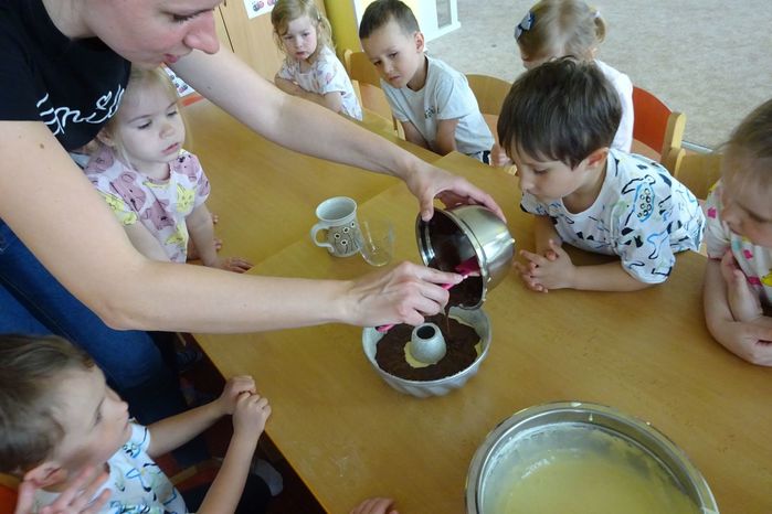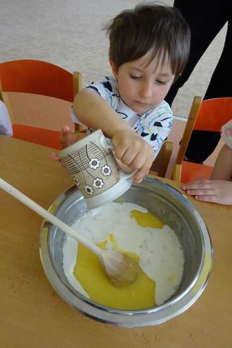 Ingredience: 2 vejce, 1 hrnek cukru krupice, 2 hrnky polohrubé mouky (nebo BZL mouky Jizerky zlaté), 1/2 hrnku oleje, 1/2 hrnku mléka, 1 kypřící prášek, 1 vanilinový cukr. Odebrat trochu těsta a smíchat s kakaem. Formu vymazat tukem a vysypat strouhankou. Péct na 180 stupňů 45 - 50 minut.