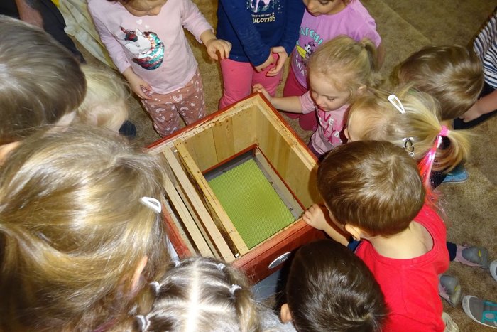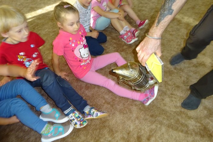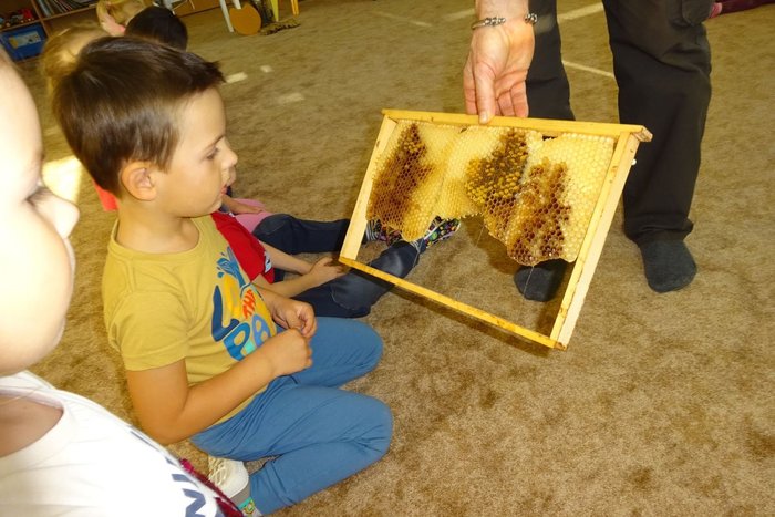Úvod > Mateřská škola > Fotogalerie akcí > Povídání o včelách s panem včelařem