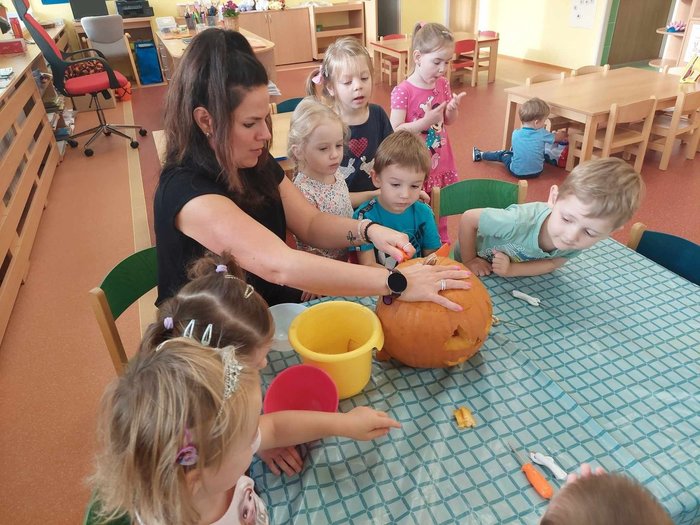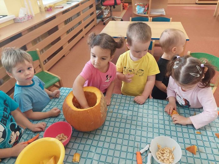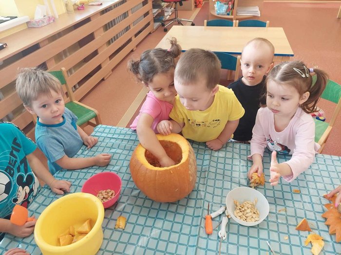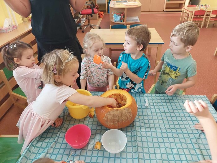 Úvod > Mateřská škola > Fotogalerie akcí > Vydlabávání dýně - Berušky