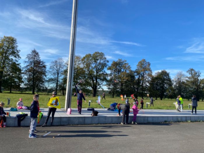 V úterý dopoledne jsme se vydali společně s mateřskou školkou na památník v Hrabyni vypustit na oblohu všechny pestrobarevné draky, které si děti donesly do školy. Počasí hrálo v náš prospěch a drakiádu jsme si všichni náramně užili.