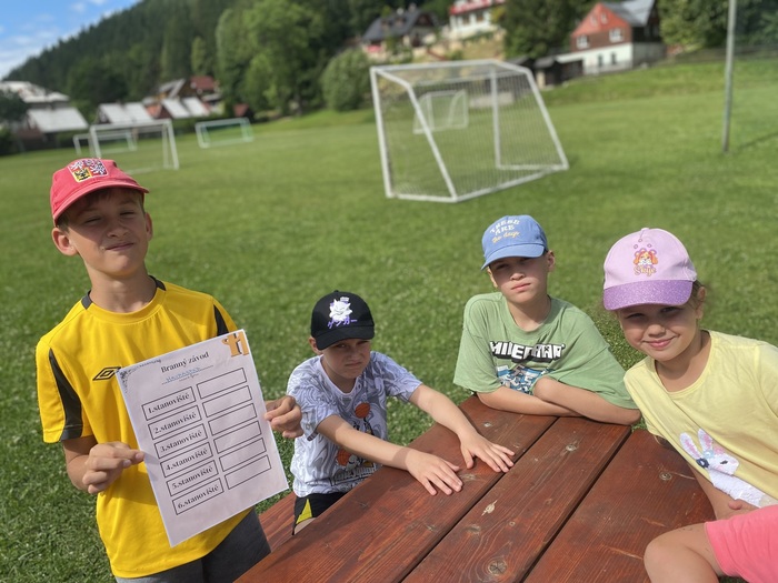 Dopoledne nás čekal branný závod se sportovními i vědomostními úkoly a hrátky na místním hřišti. Odpoledne jsme se vydali do obchodu, pořídit si nějakou vzpomínku na tento pobyt a poté jsme trávili čas u bazénu. Po večeři jsme hledali zlatonky, prošli kouzelnou stezkou při které jsme objevili poklad s viteály.