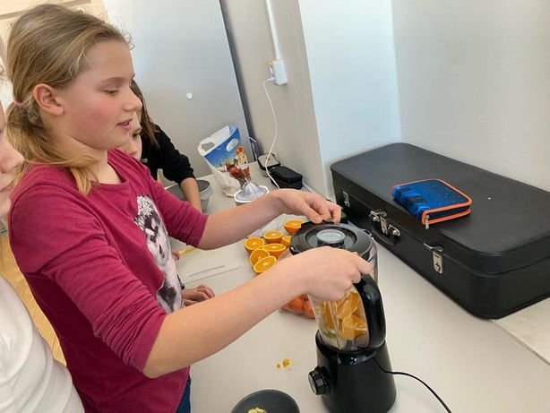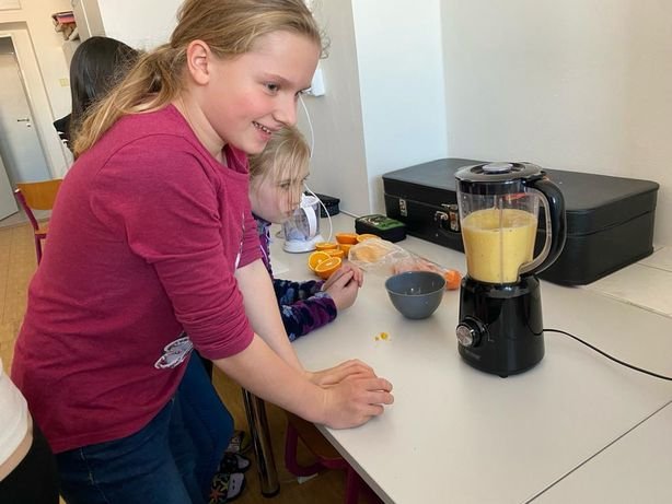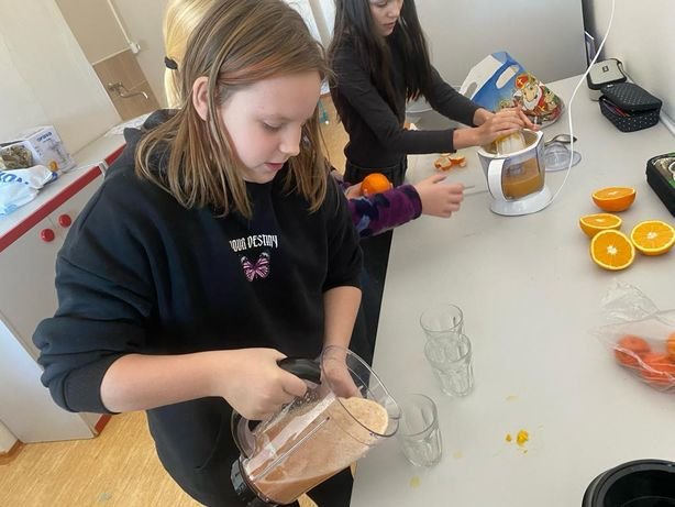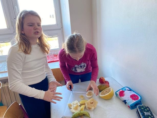 V hodině pracovní činnosti jsme si nejdříve společně zopakovali znalosti v oblasti zdraví a zaměřili se především na zdravý životní styl. Poté následovala mini aktivita v podobě jednoduché kresby zdravých a nezdravých potravin. Hlavním cílem této hodiny byla příprava ovocného smoothie. Žáci se tak učili pracovat dle stanoveného pracovního postupu, přičemž zároveň dodržovali zásady hygieny a bezpečnosti při práci. Celá hodina byla koncipována v duchu skupinové práce.