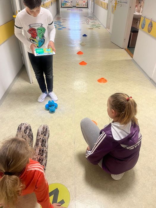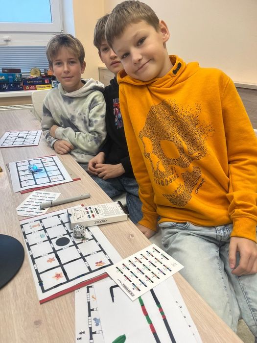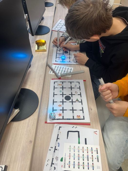 Se žáky 4. a 5. ročníku jsme se v předposledním týdnu před vánočními prázdninami věnovali robotům a základům programování a práci s iPady. Nejprve jsme se rozdělili do pracovních týmů a pak dali do práce. Žáci si vyzkoušeli i nový přírůstek do naší školní rodiny robotů, a to Ozoboty, kterým malovali cestu k vánočním obrázkům.