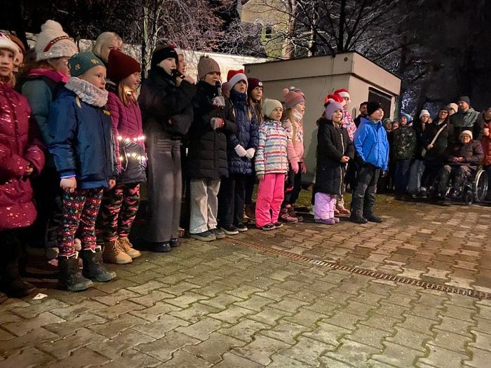 Úvod > Základní škola > Fotogalerie akcí > Zpívání koled u školy