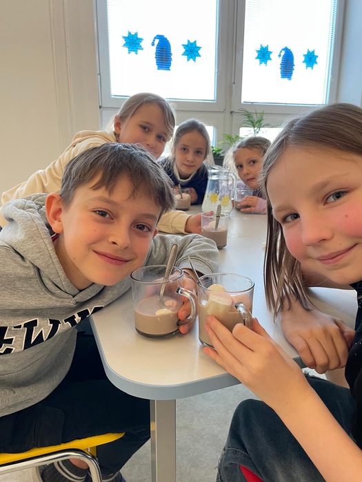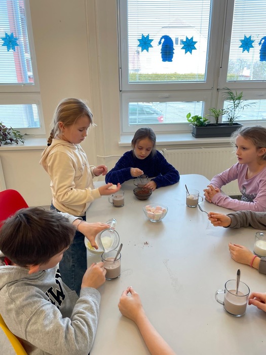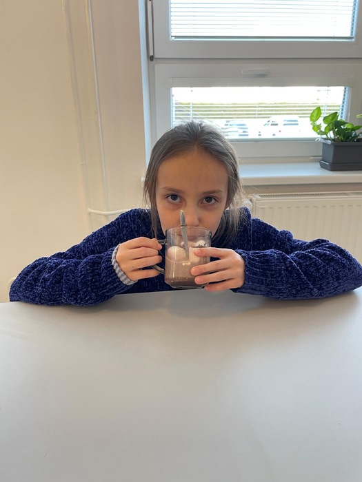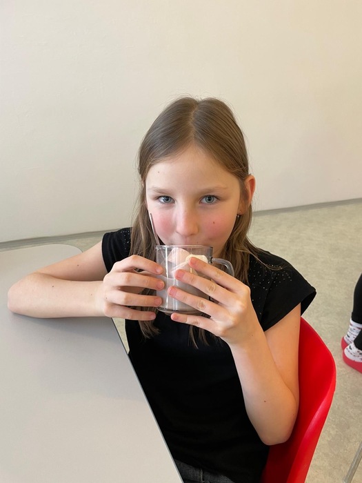 Výroba papírového hrnečku s imitací kakaa dle vlastní fantazie. Následná samotná příprava mléčného nápoje.