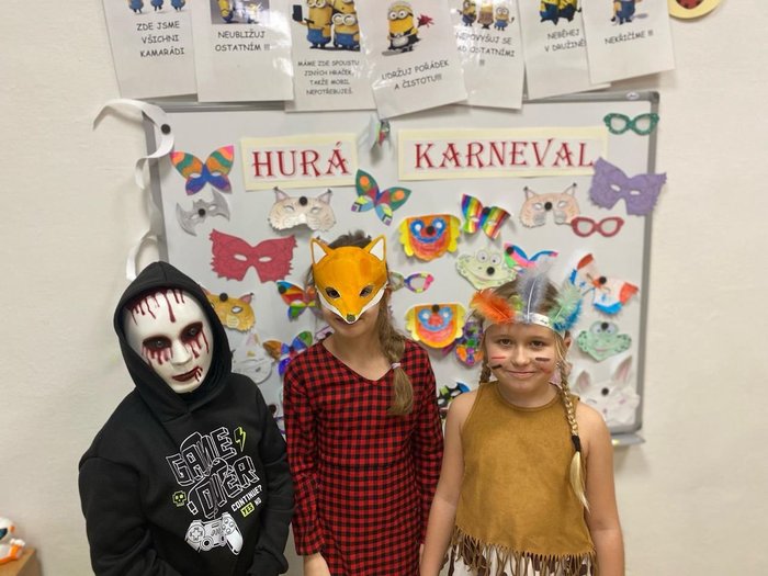 V rámci školní družiny se děti zúčastnily maškarního karnevalu, který se uskutečnil v prostorách tělocvičny. Nejdříve proběhla přehlídka masek a poté následovaly soutěžní disciplíny a taneční a zábavné aktivity. Všechny masky byly velmi originální. Velká pochvala patří dětem za jejich sportovní chování při hrách a především aktivní zapojení se do připravených soutěží. Ocenili jsme je nejen pochvalou, ale také sladkou odměnou.