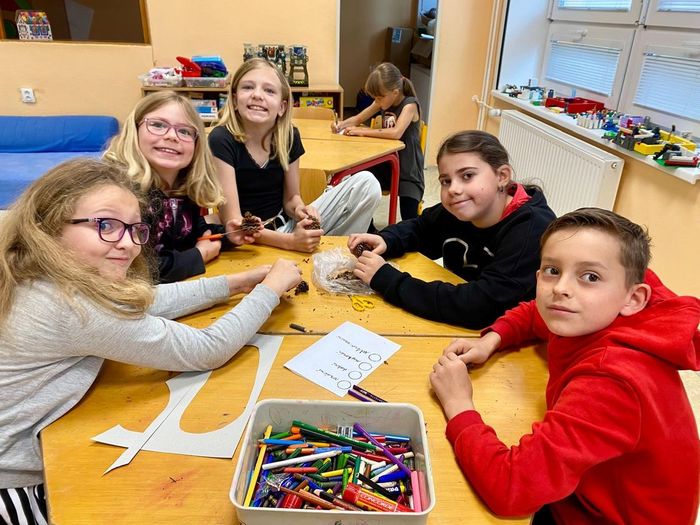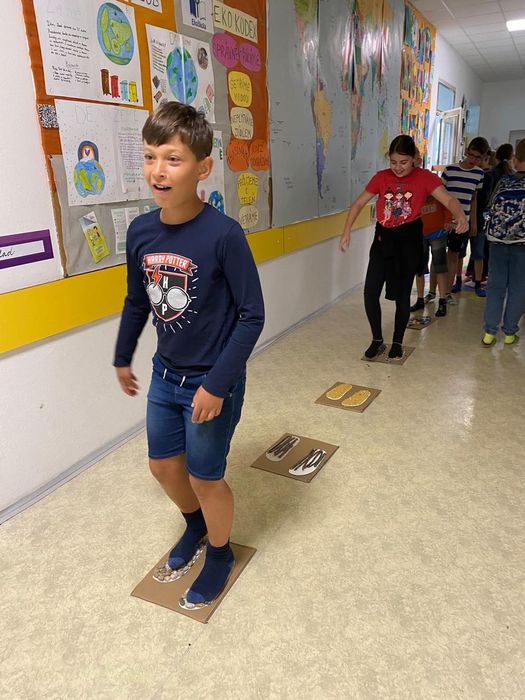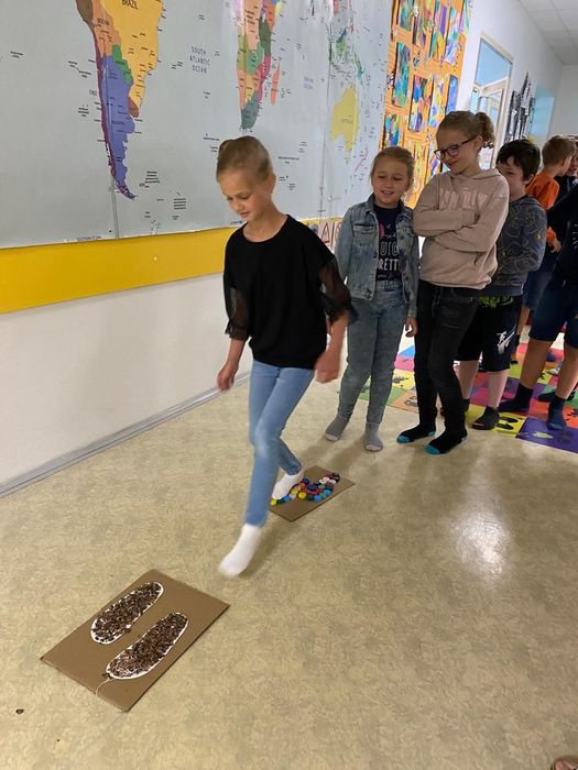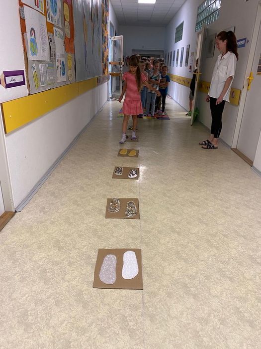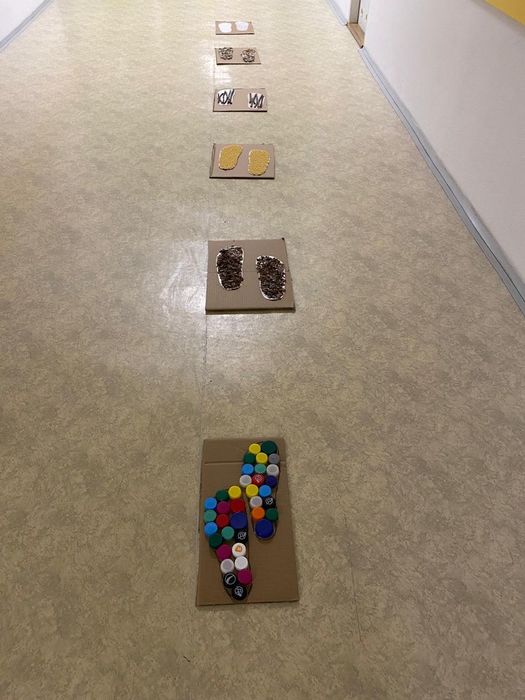 V ranní družině jsme s dětmi vyrobili senzorický chodník s využitím přírodnin a předmětů vhodných k recyklaci. Hotový chodník využíváme po ránu k vyzkoušení si pocitu chůze na boso, kdy si tak stimulujeme nervová zakončení v chodidlech, aby se nám pak ve výuce lépe přemýšlelo.
